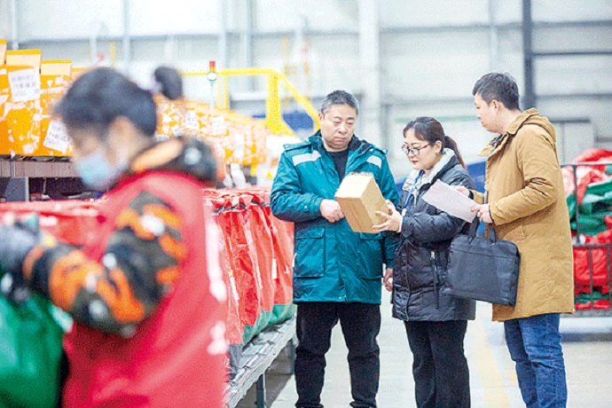河南省漯河市郾城區(qū)紀(jì)委監(jiān)委緊盯“四風(fēng)”新動(dòng)向、新表現(xiàn),嚴(yán)查快遞送禮等隱形變異行為。圖為該區(qū)紀(jì)檢監(jiān)察干部在轄區(qū)物流園區(qū)核實(shí)相關(guān)問題線索。王曉 攝