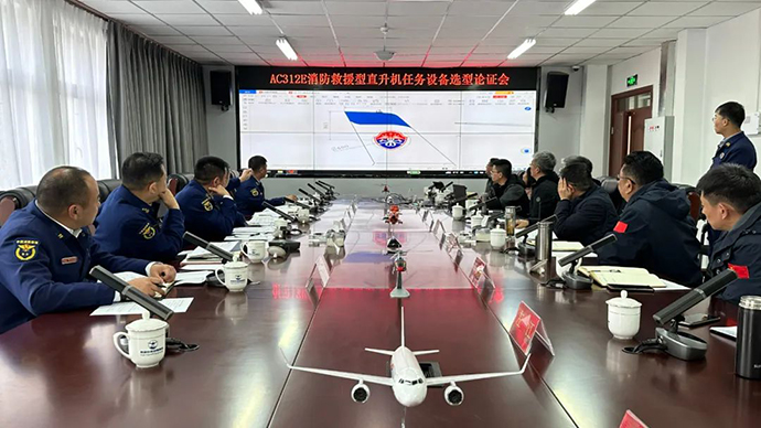 為確保我區(qū)首架消防救援型直升機正常交付使用,會上,與會人員從消防部門實戰(zhàn)需求出發(fā),就AC312E消防救援型直升機設備選型、技術參數、機身涂裝等方面進行了認真研討、提出了建設性意見。