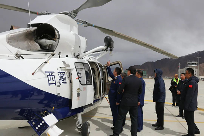 祁騰武指出,西藏各類自然災害多發(fā)頻發(fā),消防應急救援任務繁重,要堅決貫徹落實黨中央和區(qū)黨委政府關于消防救援和通航產業(yè)發(fā)展的決策部署,堅持人民至上、生命至上,聚焦穩(wěn)定、發(fā)展、生態(tài)、強邊“四件大事”,提高政治站位,立足職能定位,全力服務保障我區(qū)全任務、全地域、全要素應急救援任務開展。一是要確保安全。消防應急救援的專業(yè)性很強、危險系數也很高,要樹牢安全發(fā)展理念,增強紅線意識,堅持底線思維,落實好安全生產責任制,強化設備安全性能測試,常態(tài)化開展融合訓練,確保救援裝備安全運行。二是要深化合作。要立足航空消防救援方向,加強與自治區(qū)消防救援總隊、設備生產制造企業(yè)、科研機構的深度合作,統(tǒng)籌資源力量,創(chuàng)新工作模式,做好經驗總結推廣,力爭把不斷涌現(xiàn)的應急救援新技術、新裝備運用到全區(qū)應急救援各領域。三是要加快落地。AC312E消防救援型直升機的引進使用,區(qū)黨委政府高度關注,各族群眾翹首以盼,合作各方要積極對接、共同努力,科學謀劃預算編報、需求論證、裝備采購、國家航空器報備各項工作,確保盡早交付運行、盡早發(fā)揮效能,切實為維護全區(qū)各族人民群眾生命財產安全和經濟社會高質量發(fā)展保駕護航。