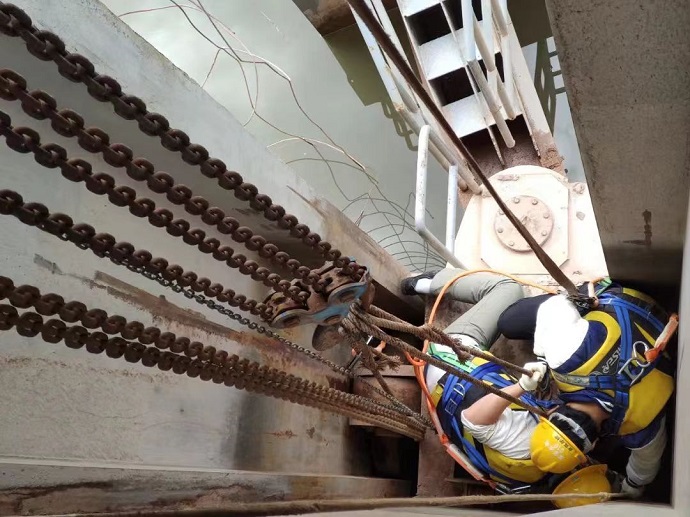 9月5日11時(shí)30分,果多水電站上游來(lái)水量突增,水庫(kù)攔污漂變浮箱無(wú)法及時(shí)上浮,導(dǎo)致大量垃圾飄進(jìn)進(jìn)水口區(qū)域,給機(jī)組運(yùn)行造成一定的安全隱患。吉克爾博接到部門安排后,馬上帶領(lǐng)兩名青年員工到浮箱上利用千斤頂、手動(dòng)葫蘆等工具開展處理。經(jīng)過(guò)分析、討論,判定攔污漂卡澀的原因?yàn)閷?dǎo)向輪長(zhǎng)期受力不均發(fā)生變形,利用千斤頂反向作用力和手拉葫蘆的牽引力,最終將攔污漂卡澀問題解決。