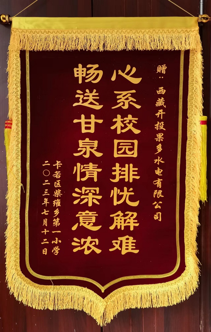 捐贈(zèng)現(xiàn)場(chǎng),果多水電公司董事長、總經(jīng)理宋亞東與校長李松林親切交流,了解孩子們學(xué)習(xí)、生活情況,鼓勵(lì)孩子們要好好學(xué)習(xí),保持樂觀向上的心態(tài),健康快樂成長。作為受助方,李松林向果多水電公司贈(zèng)送“心系校園排憂解難 暢送甘泉情深意濃”錦旗以表謝意。他表示,愛心無價(jià),情誼永恒,全校師生將把這份關(guān)愛化作砥礪前行的動(dòng)力,努力提高柴維鄉(xiāng)教育教學(xué)質(zhì)量,培養(yǎng)出德、智、體、美、勞全面發(fā)展的新時(shí)代好少年。
