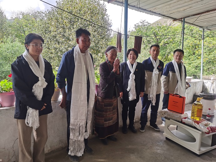 在中秋、國(guó)慶雙節(jié)來(lái)臨之際,為切實(shí)做好民族團(tuán)結(jié)工作,把愛心送到困難群眾心坎上。9月28日,嘎堆水電公司組織慰問組走進(jìn)嘎堆村困難老人家中走訪慰問,給予節(jié)日關(guān)懷及祝福。