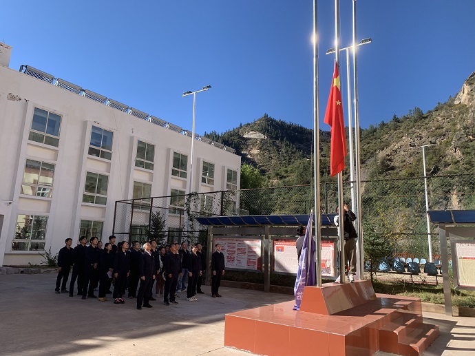 為深入學(xué)習(xí)貫徹黨的二十大精神,深刻學(xué)習(xí)領(lǐng)會習(xí)近平新時代中國特色社會主義思想,引領(lǐng)廣大干部職工賡續(xù)紅色基因,厚植愛國主義情懷。10月1日上午十點(diǎn),果多水電公司全體干部職工整齊列隊、精神抖擻,舉行莊嚴(yán)的“喜迎國慶”升國旗儀式,熱烈慶祝祖國華誕74周年。