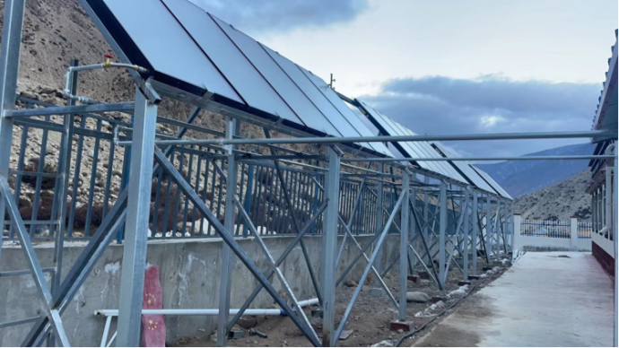 日喀則市定日縣曲當(dāng)鄉(xiāng)德吉村、優(yōu)帕村、嚴(yán)曲村位于珠穆朗瑪峰自然保護(hù)區(qū)核心區(qū),均為定日縣偏遠(yuǎn)邊境鄉(xiāng)村。項(xiàng)目供暖總面積為593.39m2,包括太陽能集熱器系統(tǒng)、輔助熱源(空氣源熱泵),儲熱系統(tǒng)、末端設(shè)施,光伏發(fā)電系統(tǒng),建筑節(jié)能改造等內(nèi)容。在日喀則市發(fā)改委的領(lǐng)導(dǎo)下,南亞公司(西藏開投下屬二級公司)以人為本、科學(xué)管理、精心組織,克服設(shè)備運(yùn)輸艱難、人員組織困難、施工機(jī)械短缺、項(xiàng)目工期緊張等種種困難,如期實(shí)現(xiàn)了項(xiàng)目投產(chǎn)。同時(shí),為評估和提升項(xiàng)目效能,配套了PLC自控柜,對供暖數(shù)據(jù)進(jìn)行遠(yuǎn)程收集及數(shù)據(jù)分析。在本項(xiàng)目運(yùn)行一個采暖期后,將對項(xiàng)目的規(guī)模效益、財(cái)務(wù)效益、綜合效益進(jìn)行綜合評價(jià),并對清潔能源供暖方式替代傳統(tǒng)燃料的減碳效果進(jìn)行科學(xué)分析,確保形成村居供暖工程可靠性好、性價(jià)比高、適宜推廣的決策方案,為全面復(fù)制推廣實(shí)施全區(qū)農(nóng)牧區(qū)清潔供暖供熱項(xiàng)目做出貢獻(xiàn)。
