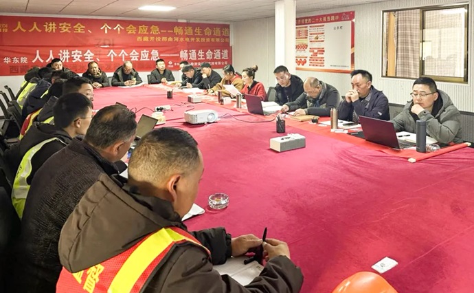 那曲河水電公司總經(jīng)理何驍強調(diào),各部門及參建單位要堅持人民至上、生命至上、堅持統(tǒng)籌發(fā)展和安全,堅持安全第一、預防為主、持續(xù)樹牢安全紅線意識,推動安全責任落實、切實提高風險隱患排查整改質(zhì)量、切實提升發(fā)現(xiàn)問題和解決問題的強烈意愿和能力水平。要緊緊圍繞集團公司“九不發(fā)生、一杜絕”的安全目標,以生命安全為底線,奠基公司高質(zhì)量發(fā)展。