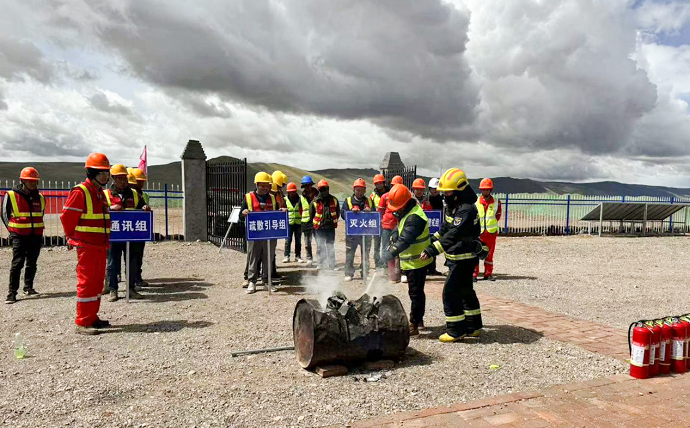 此次演習(xí)邀請(qǐng)了那曲市安多縣消防救援大隊(duì)防火參謀進(jìn)行消防知識(shí)培訓(xùn)及實(shí)際操作教學(xué)。培訓(xùn)過程中,首先觀看了近年來多起施工現(xiàn)場(chǎng)火災(zāi)典型案例,并對(duì)案例進(jìn)行了深刻剖析,明晰了火災(zāi)事故中相應(yīng)人員所承擔(dān)的法律責(zé)任,同時(shí)講解了預(yù)防、滅火和自救逃生方法。接著,消防隊(duì)通過以練代訓(xùn)的方式,讓參訓(xùn)人員上手實(shí)操,全面了解干粉滅火器的使用方法。