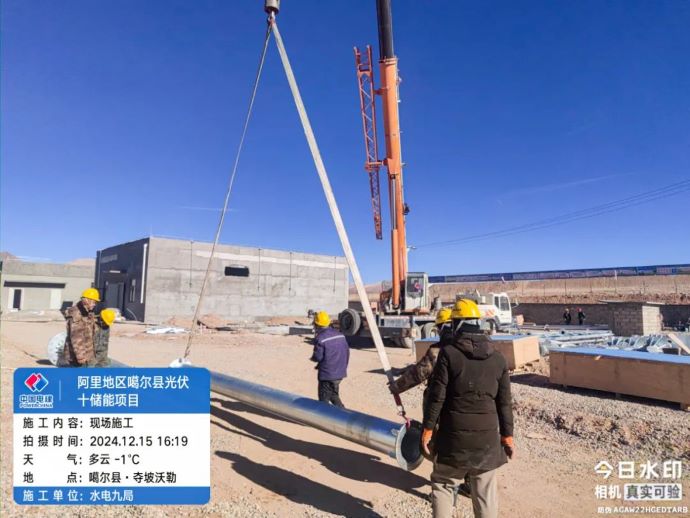 ▲噶爾光伏發(fā)電項目,現場施工人員開展避雷針吊裝作業(yè)。
