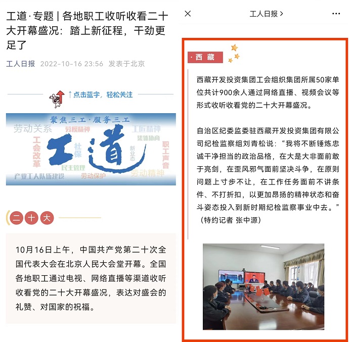 《工人日報》節(jié)選刊發(fā)集團(tuán)公司干部職工收聽收看黨的二十大開幕盛況新聞信息
