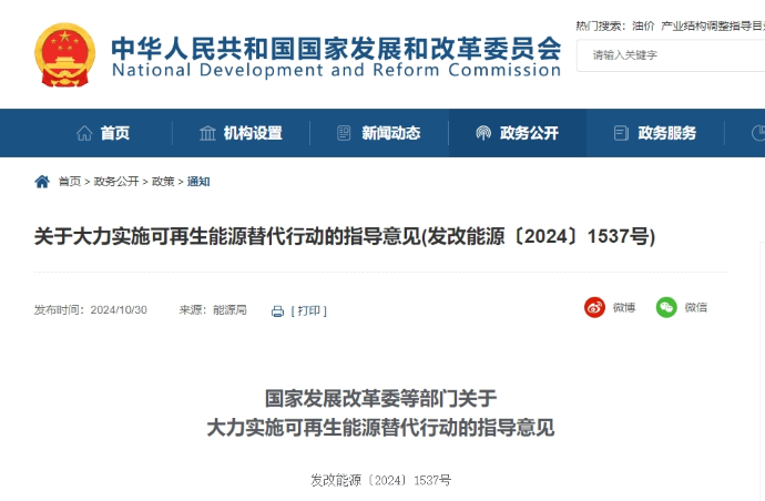 為全面貫徹黨的二十大和二十屆二中、三中全會精神,深入落實黨中央、國務院關于碳達峰碳中和重大決策部署,促進綠色低碳循環(huán)發(fā)展經(jīng)濟體系建設,推動形成綠色低碳的生產(chǎn)方式和生活方式,現(xiàn)就大力實施可再生能源替代行動,制定意見如下。