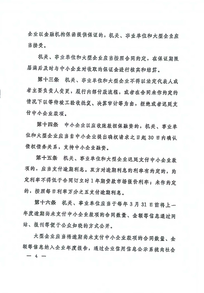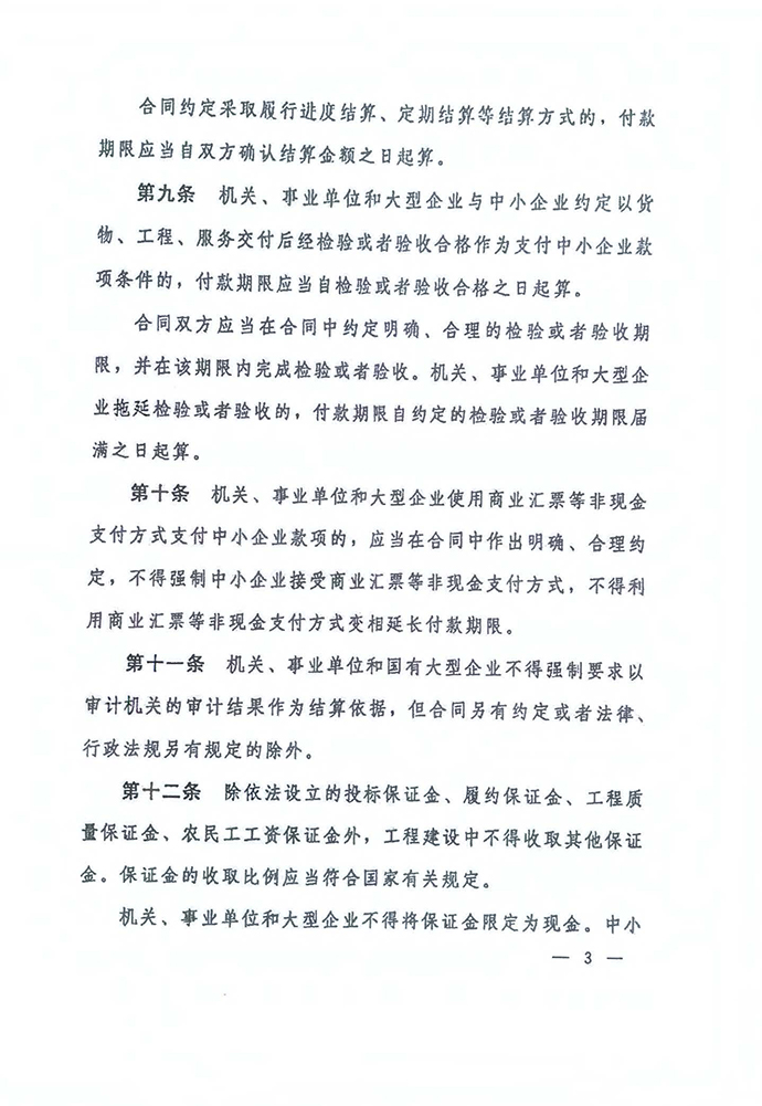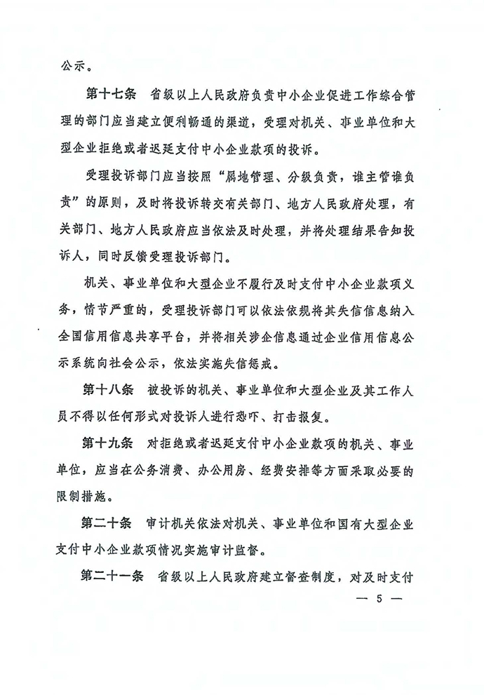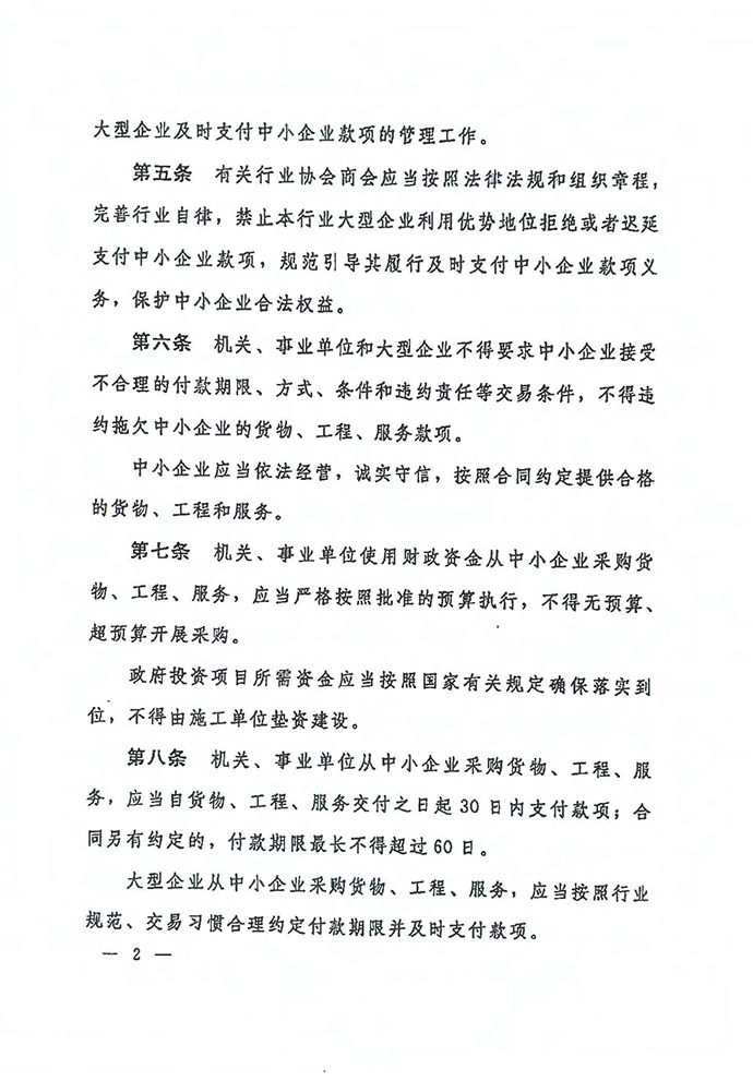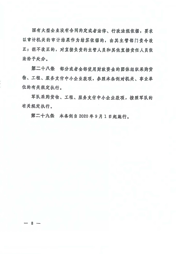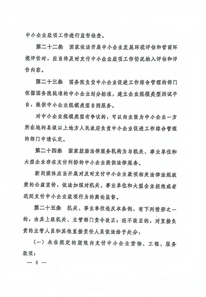 保障中小企業(yè)款項(xiàng)支付條例