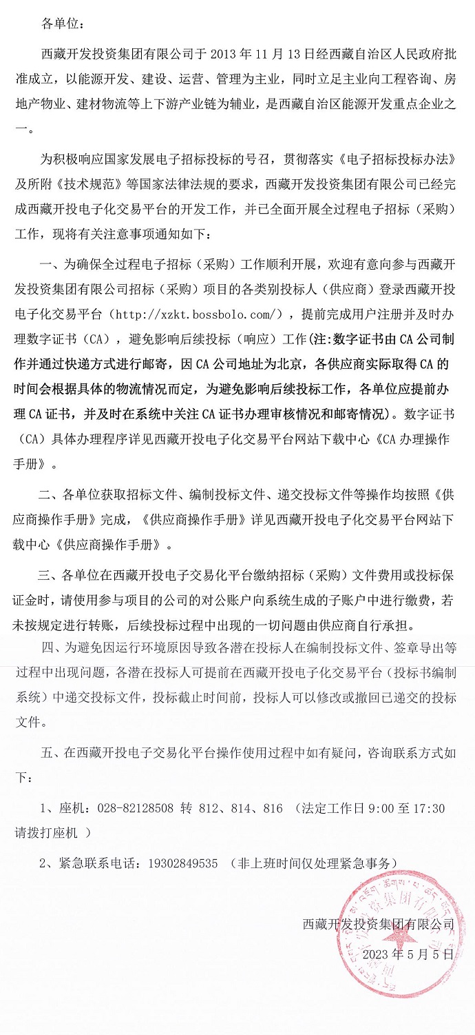 關(guān)于西藏開投電子化交易平臺操作使用方面注意事項(xiàng)的通知